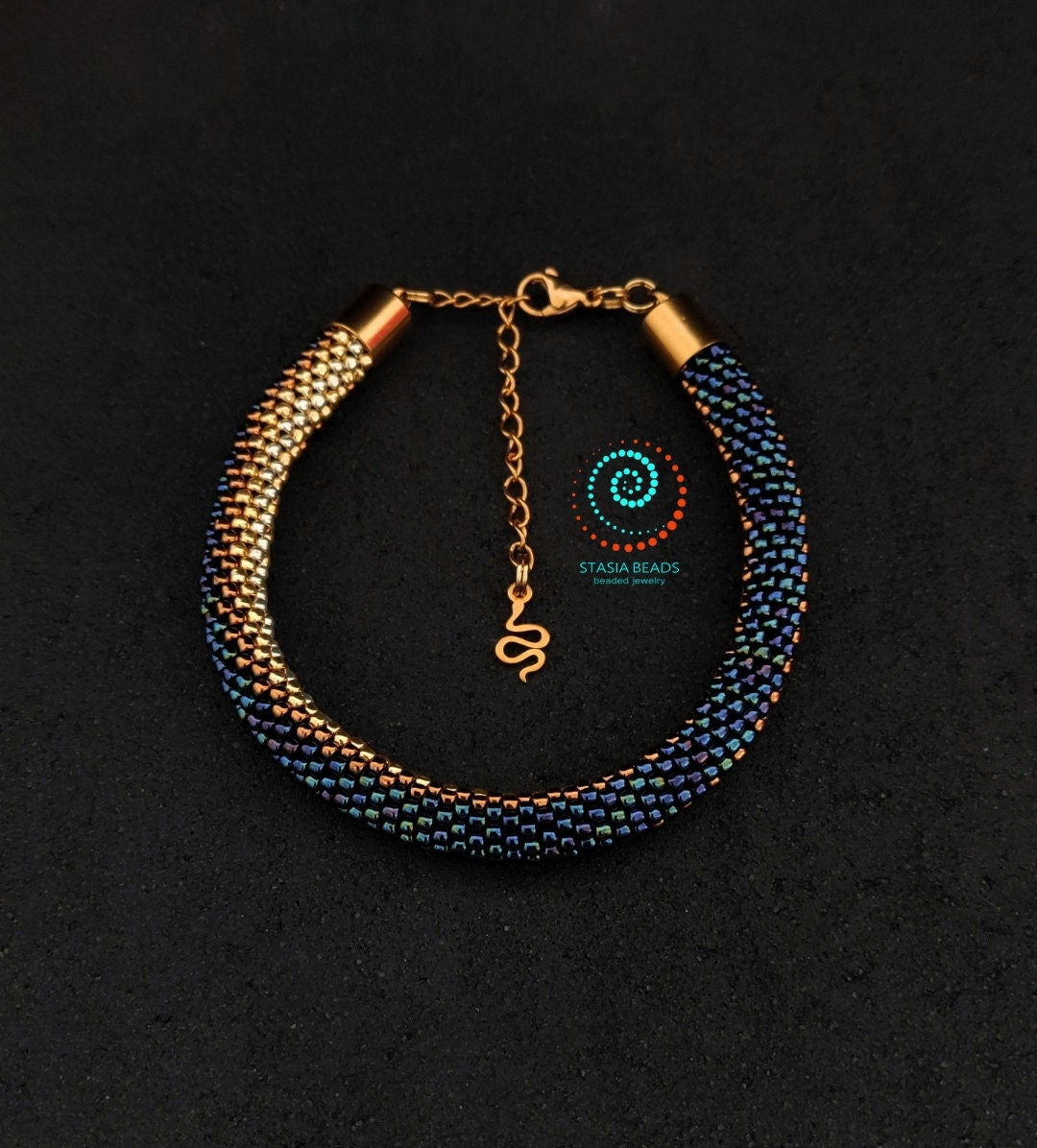 Beaded snake bracelet, Ouroboros bracelet, Serpent bracelet - 18K Gold Plated Snake clasp